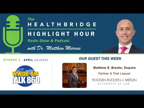 Joe Dougherty and Dr. Matthew Marcus co-host The HealthBridge Highlight Hour. Today they are joined by Attorney Matthew Breslin, a partner at the Rodden, Rodden & Breslin law firm. To contact HealthBridge Chiropractic call 833-422-4476 (833-HBCHIRO).